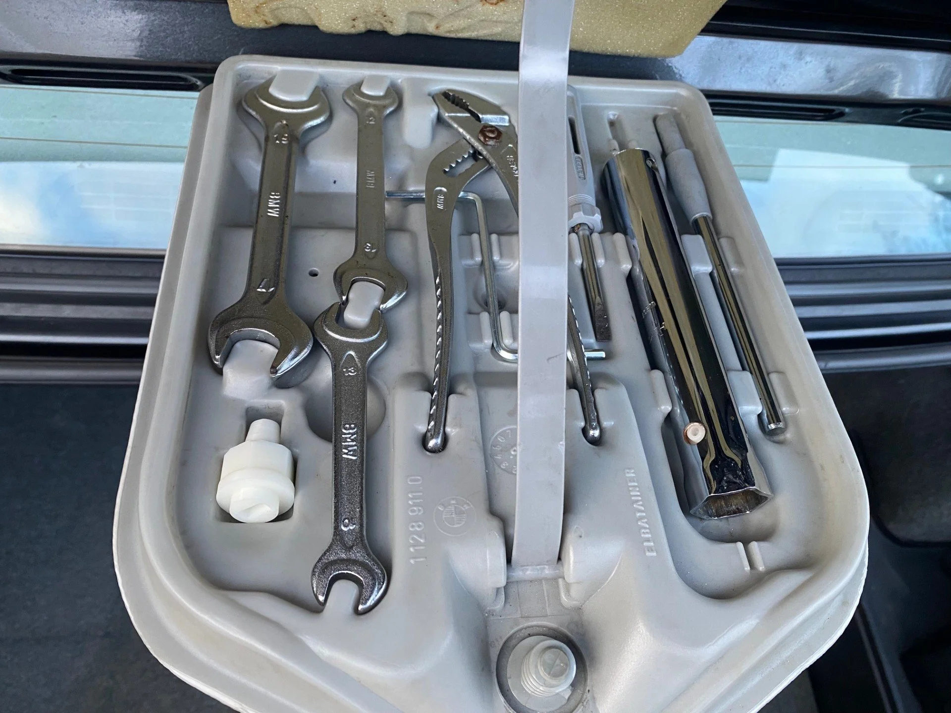 The 325i Sport comes with owners manual / wallet, service book, spare BBS alloy wheel, jack / wheel brace / wheel chock / towing eye, complete tool kit, glove box torch (not working), BMW warning triangle, 1st aid kit and 2 keys.